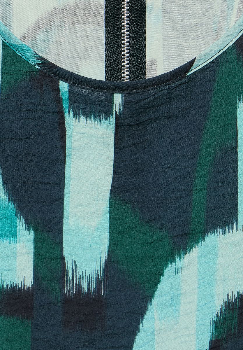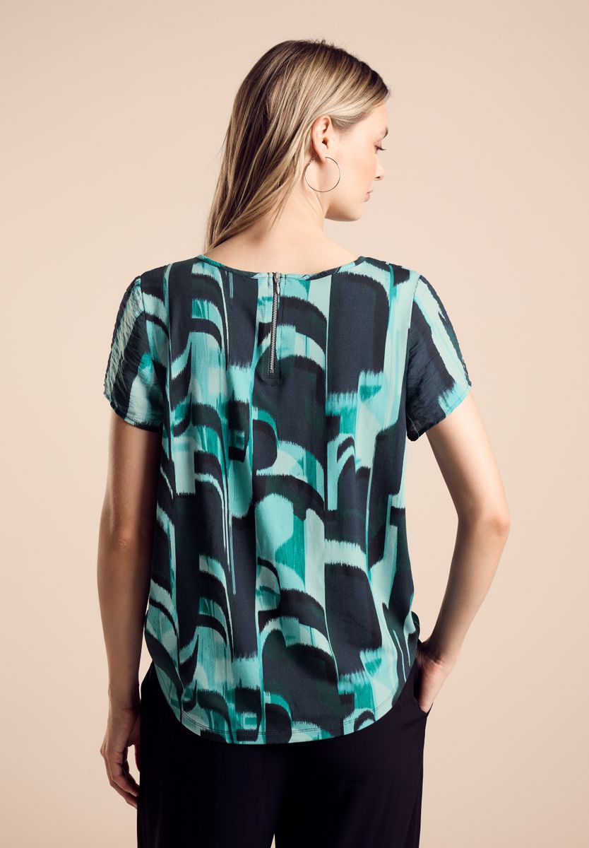Dieses T-Shirt von Street One bietet eine interessante Kombination aus Webstoff vorne und Jersey hinten. Der Rundhalsausschnitt und der luftige Schnitt garantieren Tragekomfort und Bewegungsfreiheit. Das grafische Muster sorgt für ein sommerliches Flair. Sommerliches Damenshirt Rundhalsausschnitt Vorne Webstoff Hinten Jersey Grafisches Muster Material: Vorderseite: 84% Viskose, 16% Polyamid; Rückseite: 95% Viskose, 5% Elasthan
