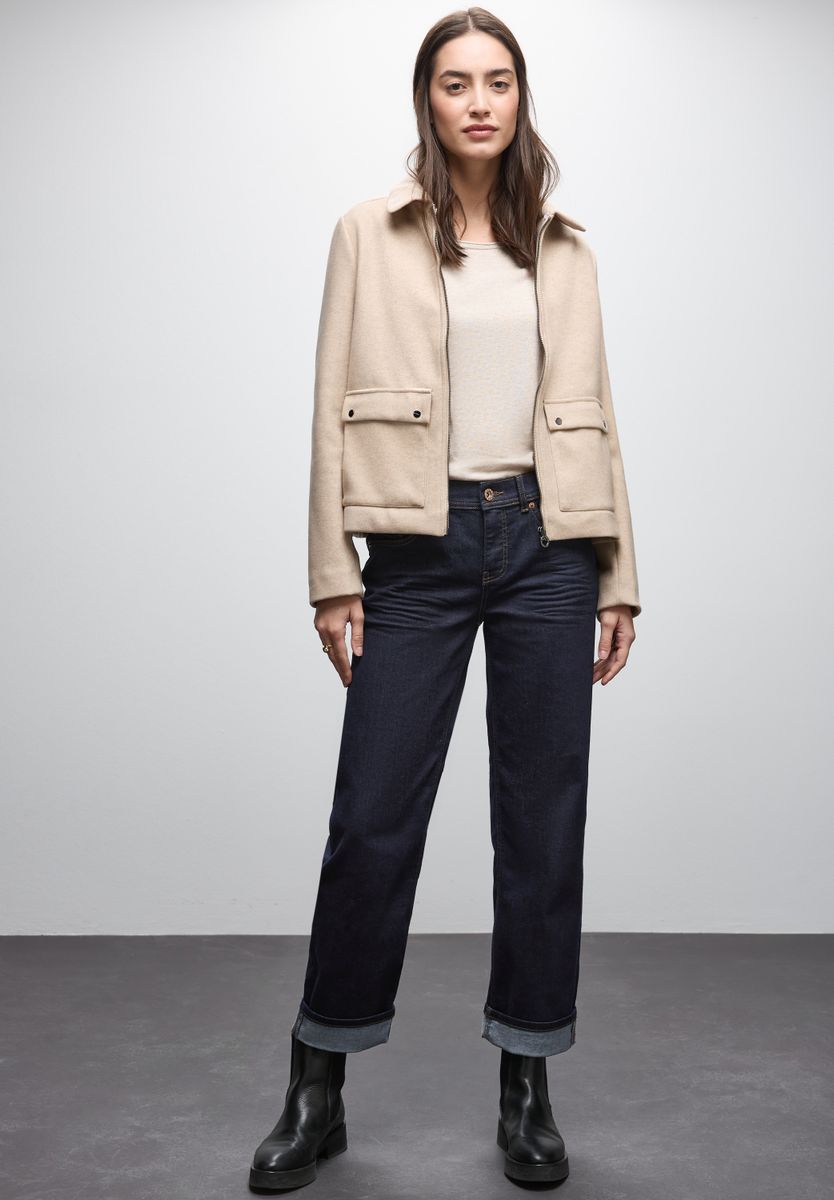 Im cleanen Rinsed Look zeigt sich diese Straight Leg Jeans von Street One für Damen mit klassischer Silhouette und dezentem Casual Fit. Der elastische Bund hinten sorgt für eine komfortable Passform, während der Stretchanteil im Baumwollmix Bewegungsfreiheit garantiert. Ideal für gepflegte Everyday-Outfits. Jeanshose im Casual Fit Mid Waist und Straight Legs Rinsed Look Elastischer Bund hinten Baumwollmix mit Stretchanteil Material: 72% Baumwolle, 27% Polyester, 1% Elasthan FARBNR