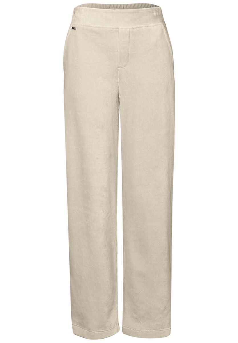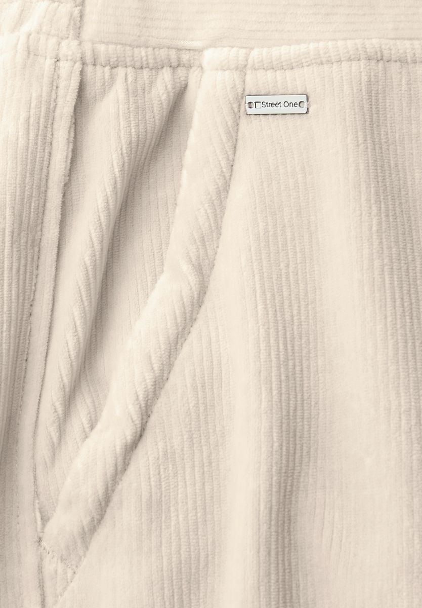 Die Cordhose von Street One für Damen begeistert im Casual Fit mit geradem Bein und hohem Bund. Der weiche Breitcord sorgt für ein angenehmes Tragegefühl, während der elastische Bund hinten und die seitlichen Taschen den Komfort unterstreichen. Ein lässiger Begleiter für stilvolle Herbst- und Winterlooks. Damenhose im Casual Fit High Waist und Straight Legs Seitliche Taschen Elastischer Bund hinten Softer Breitcord Material: 60% Baumwolle, 38% Polyester, 2% Elasthan FARBNR