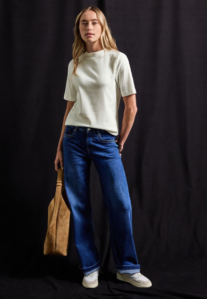 Dieses T-Shirt von Street One für Damen kombiniert einen modernen Turtleneck mit zarter Rippstruktur. Der Kurzarm-Schnitt macht es ideal für Layering-Looks oder wärmere Tage. Die Baumwollqualität mit Stretchanteil sorgt für ein angenehmes Tragegefühl und eine gute Passform. Damenshirt Turtleneck Kurzarm Feine Rippstruktur Softe Baumwollqualität mit Stretchanteil Material: 95% Baumwolle, 5% Elasthan FARBNR
