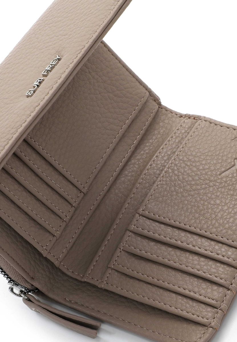 Individuelle Persönlichkeit zeigen - mit SURI FREY Jederzeit schick unterwegs. Mit SFY Tiffy - der schicken Geldbörse aus Feinsynthetik mit Reißverschluss - sind Karten und Bargeld mit Stil und Klasse verwahrt. Das Modell besteht aus Feinsynthetik und lässt sich mit einem Reißverschluss verschließen. Die Echtleder-Optik und das Uni-Design sind fein gearbeitet und verleihen der Geldbörse einen edlen Look. SURI FREY kennt die Wünsche ihrer begeisterten Kundinnen genau und sie weiß, was sie verbindet - Lebensfreude und Freundschaft. Und genau das spiegeln die Modelle des angesagten Modelabels wider. Die Geldbörse hat ein übersichtliches Hauptfach. Das Modell SFY Tiffy ist von der Haptik eher weich und daher wirklich angenehm zu tragen. Für das süße Extra sorgt die Applikation mit Single Lettering, die einen zusätzlichen Akzent setzt. Perfekt für den Abend mit den Mädels oder ein angesagtes Event. In die hübsche Geldbörse passen Portemonnaie, Handy und ein Lippenstift - also alles, was eine Frau zum Ausgehen braucht. Das Portemonnaie besitzt ein Reißverschluss-Münzfach, 12 Kreditkartenfächer und Scheinfächer.