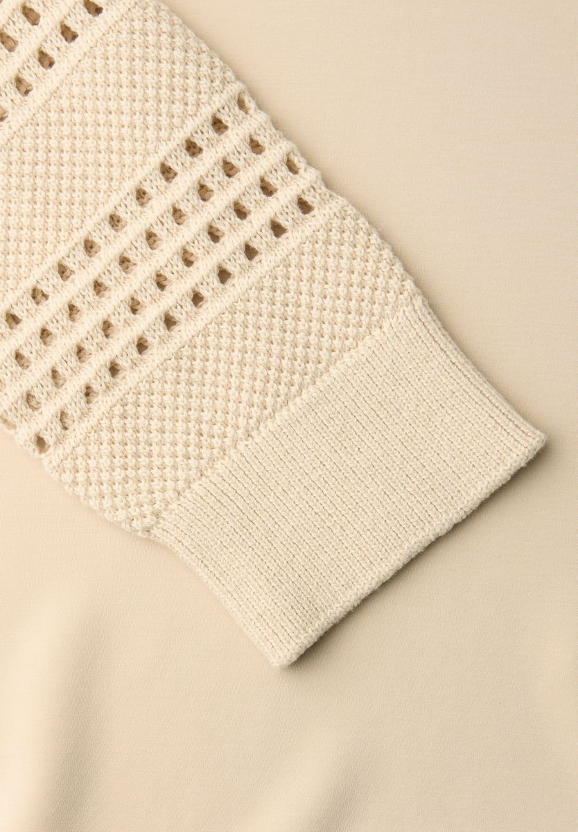 Dieses besondere Shirt von Street One begeistert mit einem spannenden Strukturmix aus seidigem Body und auffälligen Ärmeln in Lochstrick-Optik. Der sanfte Glanz des soften Modalmixes verleiht dem Silk-Look eine edle Note. Der Rundhalsausschnitt und die 3/4-Ärmel runden das feminine Design ab. Ein modisches Highlight, das angenehm zu tragen ist und jedes Outfit aufwertet. Silk-Look Shirt mit Ärmeln in Strick-Optik Casual Rundhals 3/4-Arm Spannender Strukturmix Material: 46% Modal, 46% Polyester, 8% Elasthan